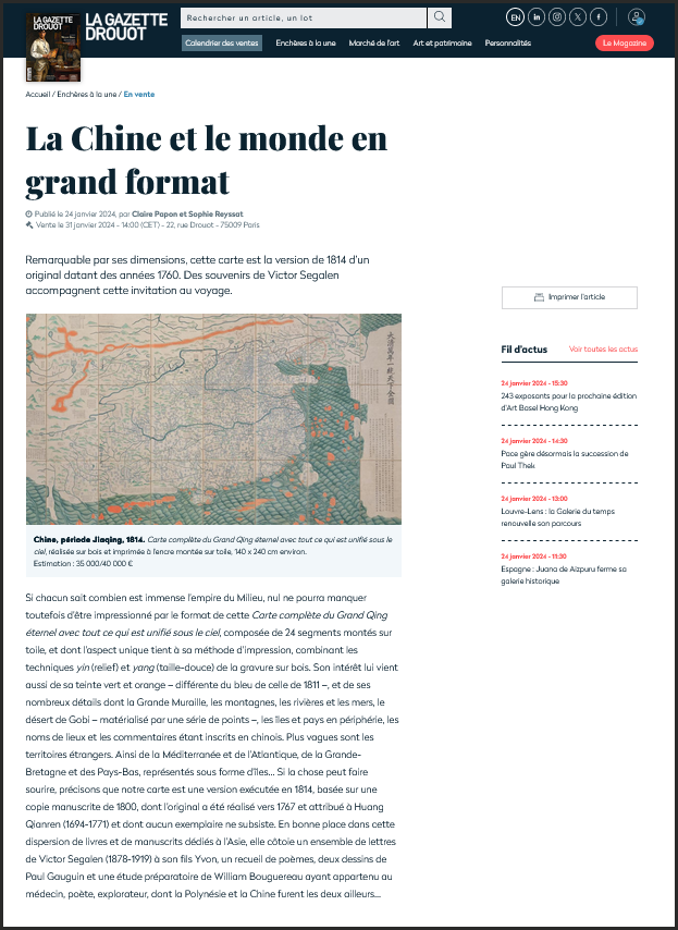 Les souvenirs de Victor Segalen dans la Gazette Drouot