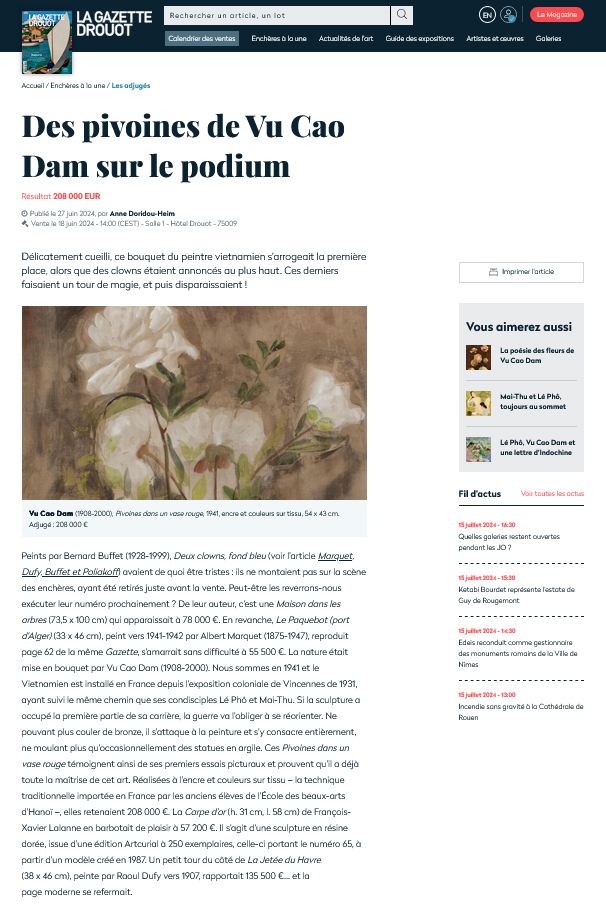 Des pivoines de Vu Cao Dam dans la Gazette Drouot