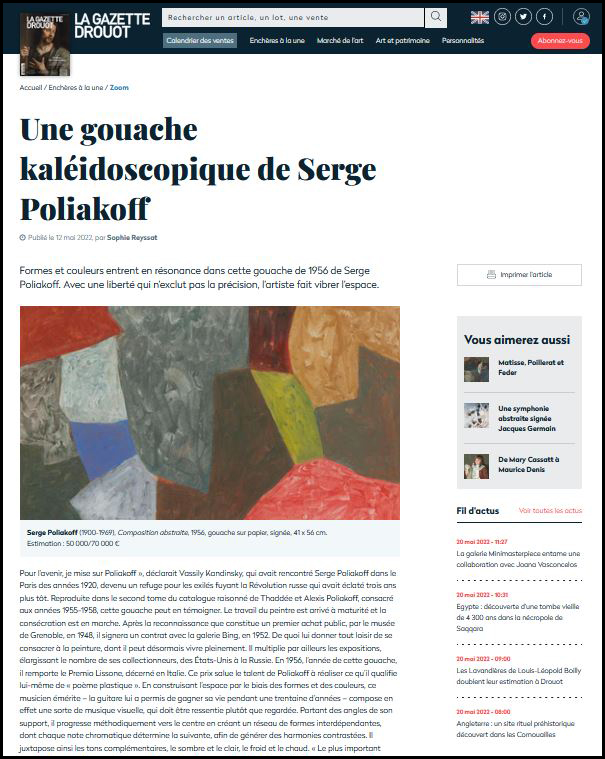 Notre gouache de Poliakoff dans la Gazette Drouot