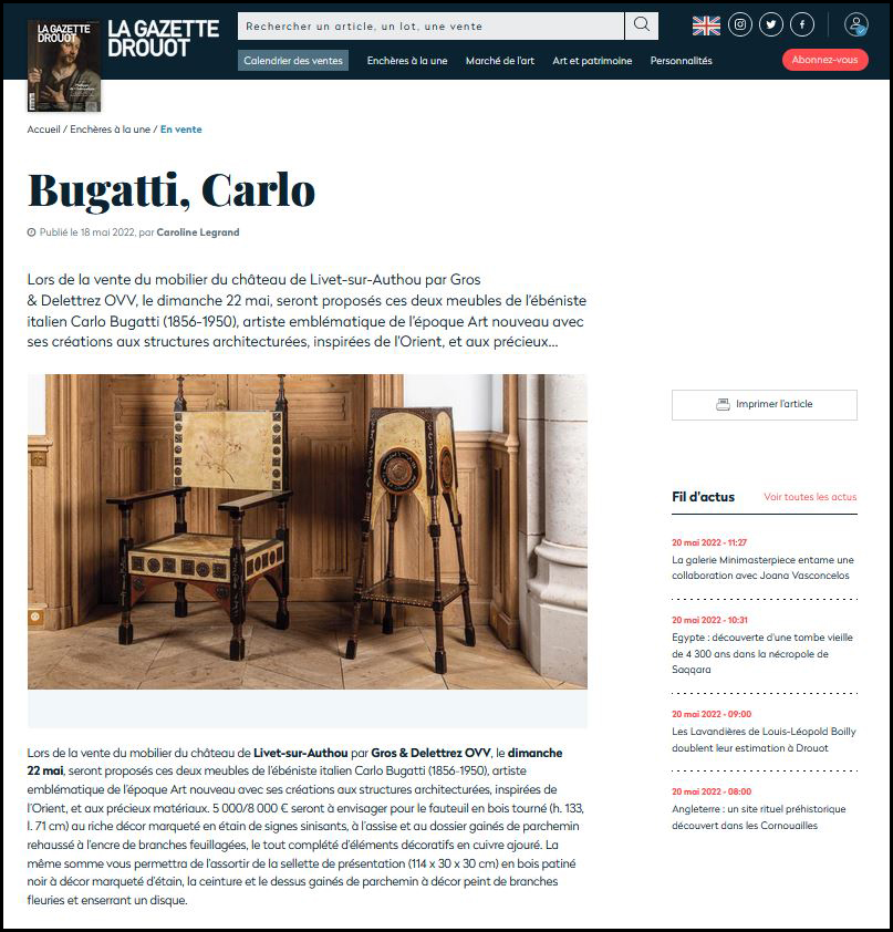 Nos meubles Bugatti dans la Gazette Drouot