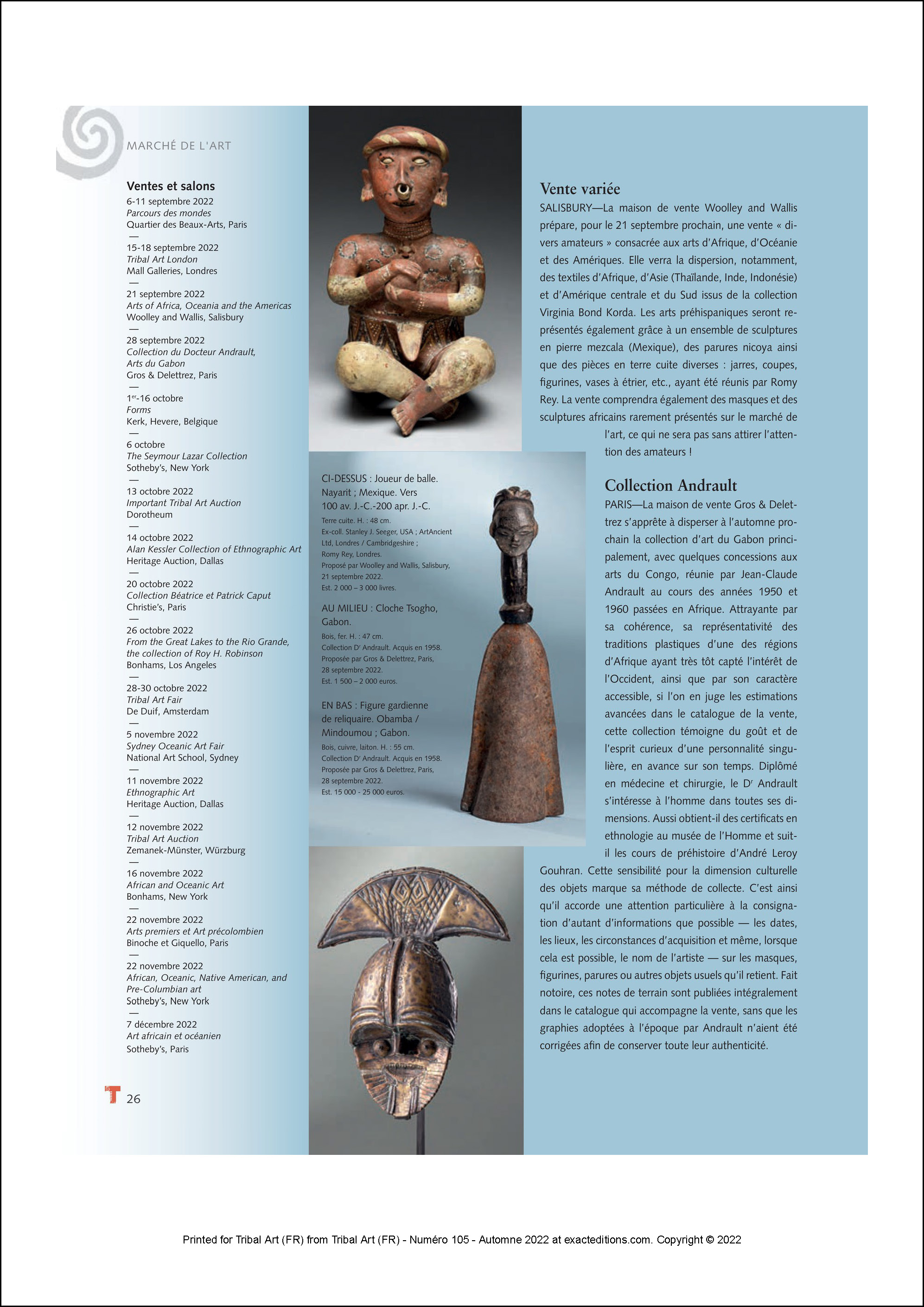 Notre vente, qui met à l'honneur l'exceptionnelle collection du Dr Andrault, est dans Tribal Art Magazine. Cliquez sur les vignettes pour agrandir les images