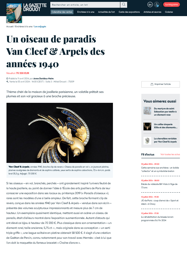 Une broche signée Van Cleef & Arpels dans la Gazette Drouot
